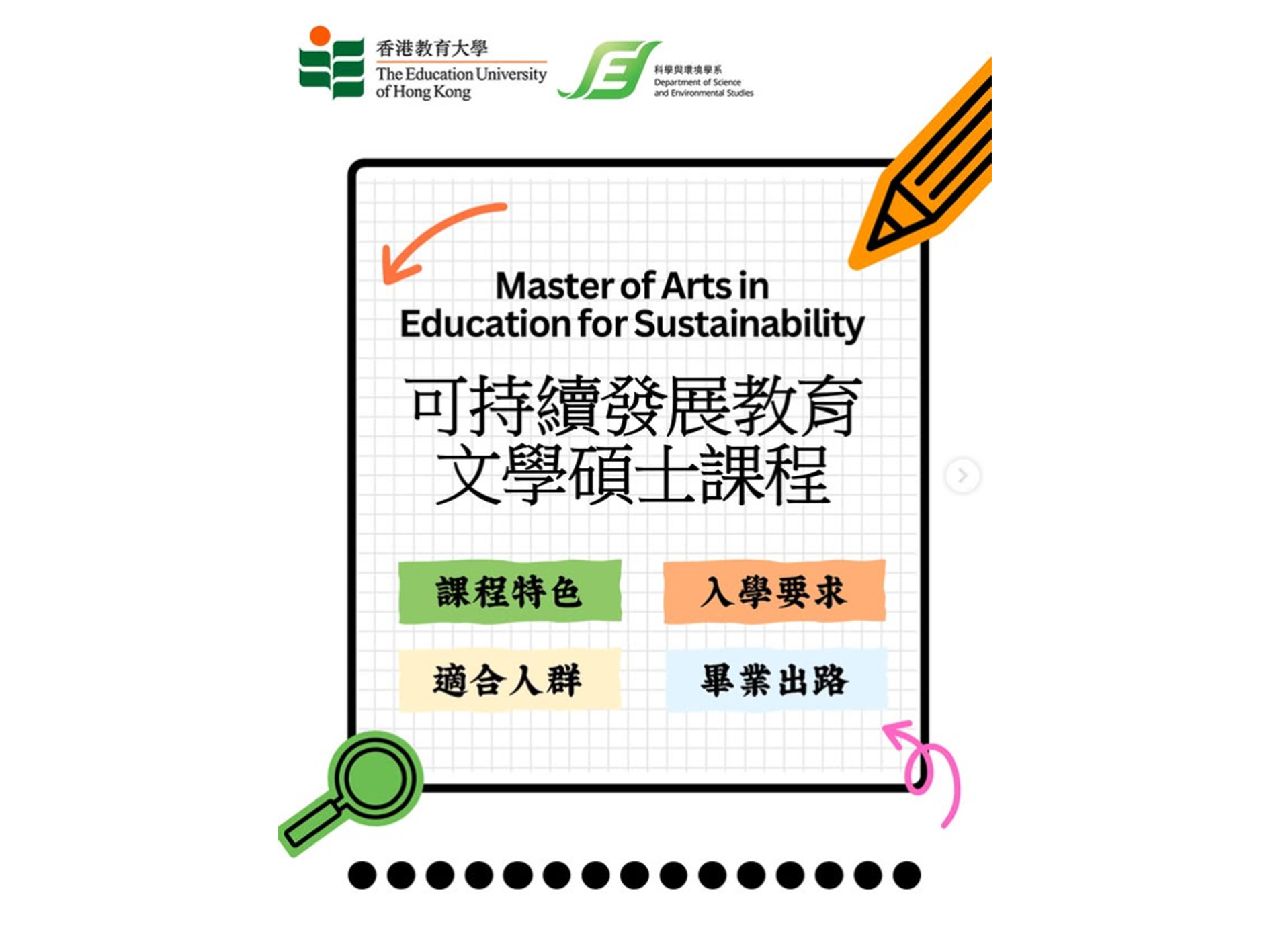 Emphasises subject knowledge, innovative pedagogical practices, flexible teaching environments and a critical approach to thinking about educational and sustainability issues...