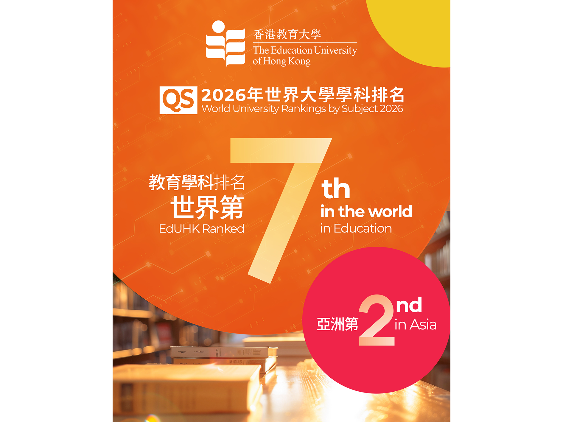 EdUHK achieves best-ever ranking in Education, as well as being placed in the world's top 200 in Linguistics, top 250 in Psychology and top 300 in Sociology